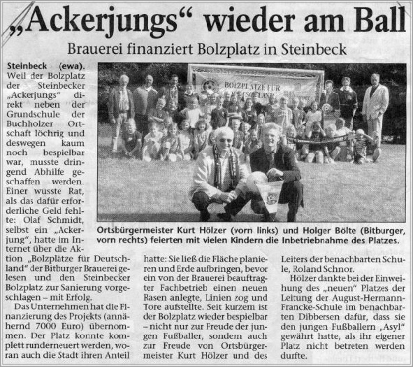 Hier findet Ihr eine Übersicht über die Presseberichte der Steinbecker Ackerjungs der letzten Jahre.